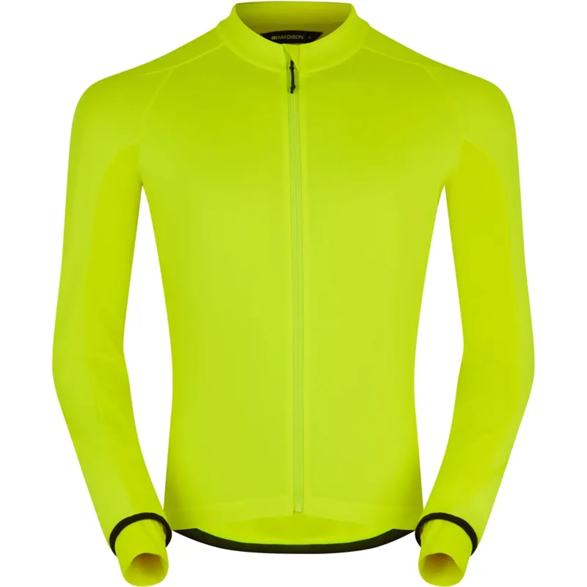Thermal road cycling jacket with a dwr coating to repel spray and showers. Stretch body fit for athletic performance, features a drop tail and three rear pockets